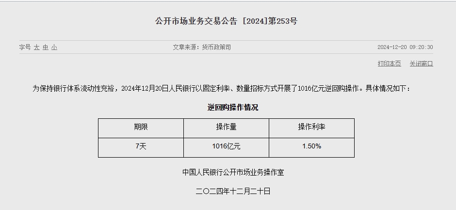 央行开展1016亿元7天期逆回购操作巴适游戏网• 2024-12-20 12:04:14•快讯•阅读 752 财经12月20日讯 今日,中国人民银行官网显示,为保持银行体系流动性充裕,2024年12月20日人民银行以固定利率、数量招标方式开展了1016亿元7天期逆回购操作,操作利率1.50%。 标签: 银行/ 马上消费以“AI科技 金融”帮扶“智慧养鸡”新农人 上一篇2024-12-20冲刺“保壳” *ST公司各秀“财技”下一篇 2024-12-20相关推荐 “内部人员”可办“靓号”?起底代办车牌套路购置新车,谁都希望能有一组心仪的车牌号,而除了正常选号,也有人试图托这样那样的“内部关系”,办到一张所谓的“靓号车牌”>>>2024-12-20 12:04:14583 2025善议论坛:江南布衣携手 Spiber 以未来纤维重启时尚新纪元随着越来越多品牌、科技企业与平台加入这一进程,下一代材料供应链的重塑必将加速推动时尚产业迈向一个更加绿色与可持续的新纪元。2024-12-20 12:04:14359 青小云带您解码青云店:一座现代小镇的生机美视频无法播放,请升级浏览器至最新版。2024-12-20 12:04:141777 司法部发布规范涉企行政执法专项行动第二批典型案例贵州某县政府行政执法监督局针对县交警大队辅警独立执法的问题,明确执法辅助人员与正式执法人员的权责边界,杜绝辅助人员独立执法。 针对涉企检查“频次过高、重复2024-12-20 12:04:14826 新版室外健身器材安全国家标准近日实施 一图看懂十二个变化新版《室外健身器材的安全通用要求》新增总体要求、绿色环保和可回收材料要求、载荷计算方法等内容,并增加了适老化和适儿化要求,突出对“一老一小”的关爱。2024-12-20 12:04:141932 逆势向上!中国外贸增速逐季加快着眼细分数据,外贸“稳中向好”的“面貌”更加清晰,抗压抗逆能力进一步显现。 从季度看,增速逐季加快。从一、二季度分别增长1.3%、4.5%,到三季度增长6%,我国进出口已2024-12-20 12:04:14104 我国首份城市综合发展指数报告发布 北京、深圳、上海综合排名前三综合评估结果显示:我国城市高质量可持续发展呈现“头部引领、整体向好”的良好态势。北京、深圳、上海位居综合排名前三。 综合评估结果显示:我国城市高质量可持续2024-12-20 12:04:14918 李正斌获批担任中铁信托总经理中国网财经10月13日讯 今日,四川金融监管局公布相关批复,核准李正斌中铁信托有限责任公司总经理的任职资格。以下是相关批复正文: 公开资料显示,中铁信托是经国家金融2024-12-20 12:04:14718
