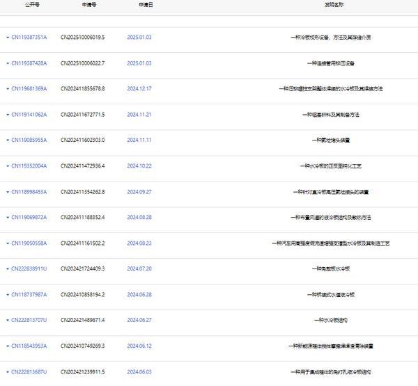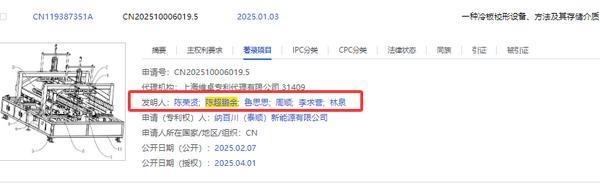 国家知识产权局官网公示信息显示,陈超鹏余出现在纳百川多项发明专利的发明人行列,检索显示数据136条,其中申请日为2023年以后的超过了80条。比如“一种直冷板高压氦气检漏工装及检测方法”、“热交换水冷板组件”、“一种冲压式水室的电池热管理装置”、“一种激光在线刻蚀装备”等,陈超鹏余都出现在专利发明人行列。