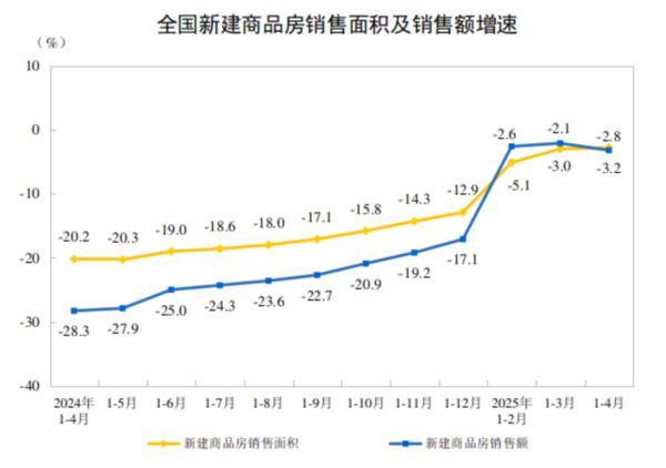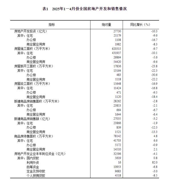 财经5月19日讯 国家统计局网站发布2025年1—4月份全国房地产市场基本情况。