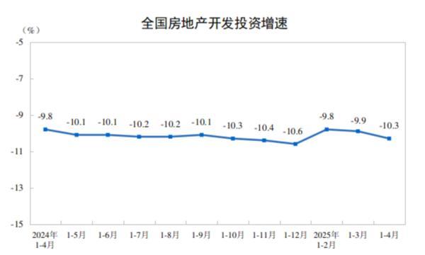 1—4月份,全国房地产开发投资27730亿元,同比下降10.3%(按可比口径计算;其中,住宅投资21179亿元,下降9.6%。