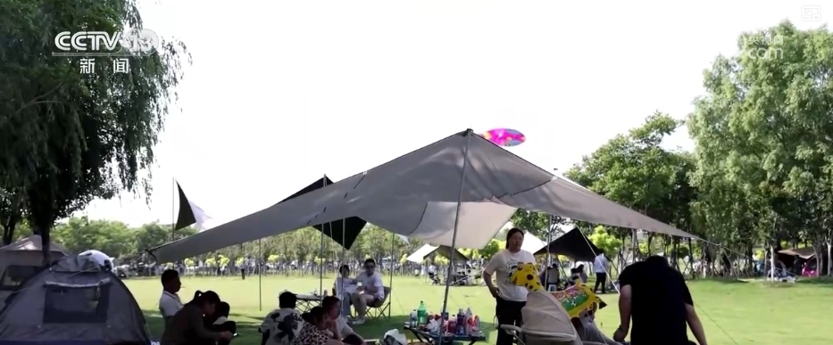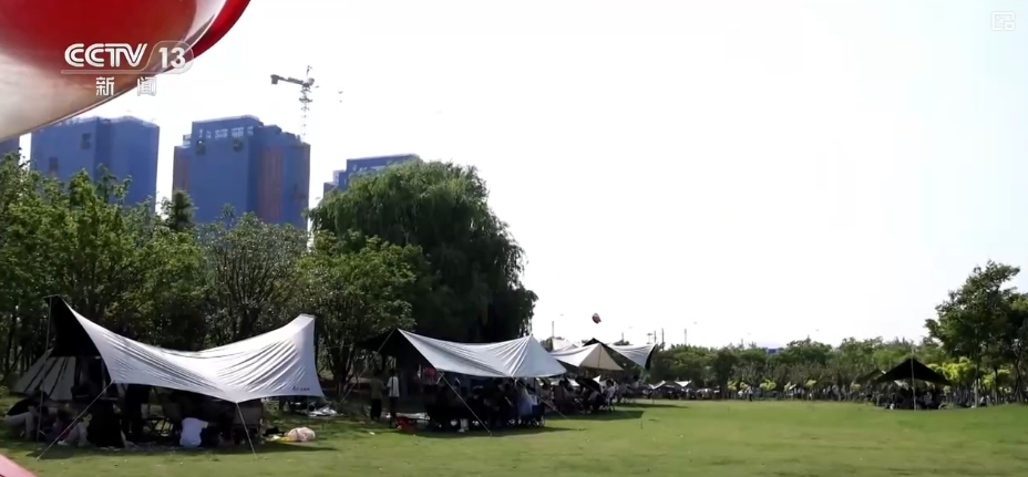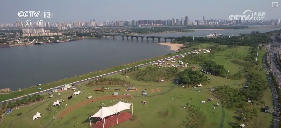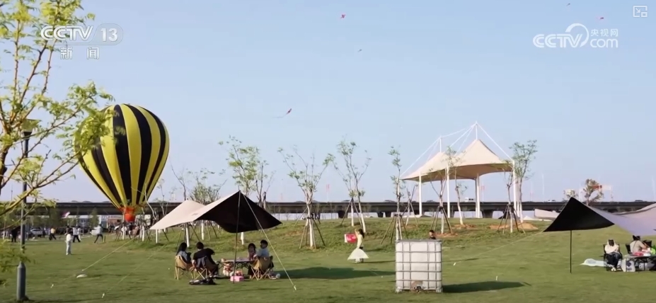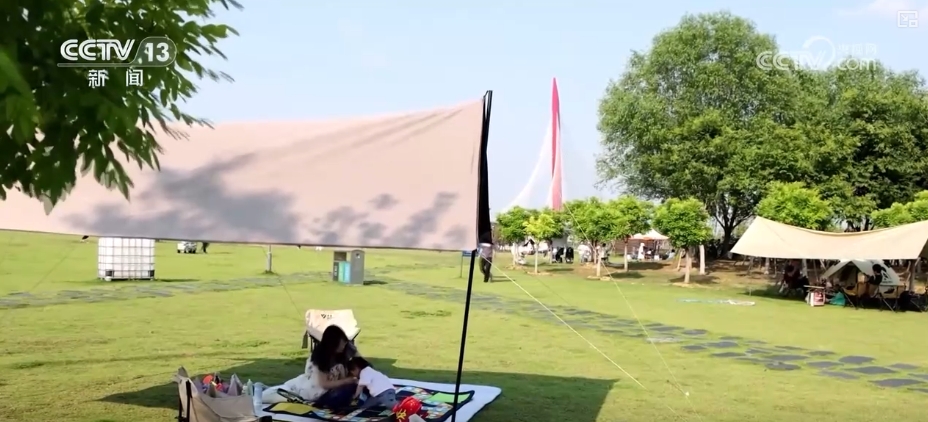 在江西南昌的赣江市民公园,每逢周末这里便热闹非凡。露营区里,不少市民在这里搭起了天幕、帐篷,摆开野餐垫,缤纷错落的帐篷点缀绿地。大家在长达28公里的滨江景观连廊中,超9.5万平方米的绿地上,亲近自然、放松身心,享受惬意的休闲时光。