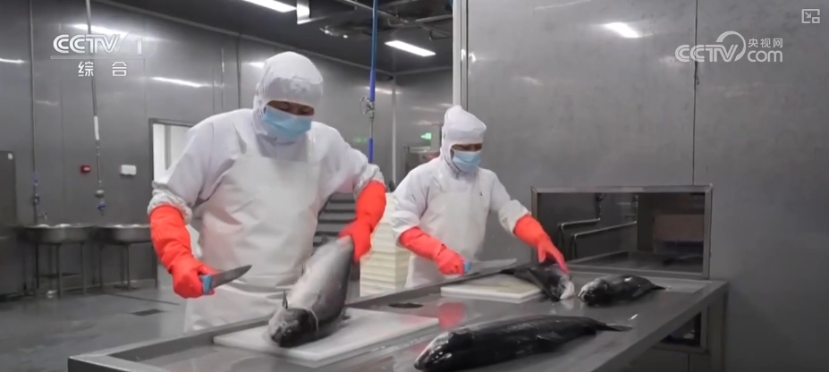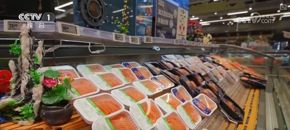 在四川成都的东航冷链西部生鲜港,搭乘空中专线从秘鲁运过来的冰鲜三文鱼,在这里加工后,快速配送到周边的商超门店。从国外产地到国内餐桌,最快只要48小时。