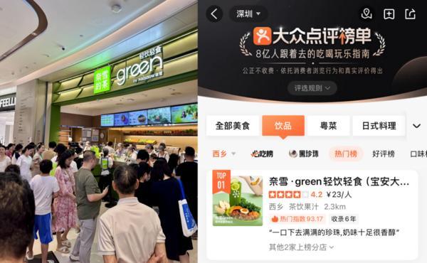 奈雪 Green 大仟里新店的火爆并非偶然。此前,奈雪在深圳前海开出的首家轻饮轻食 Green开业 3 天销售额近 12 万元、登上深圳饮品人气榜、收藏榜TOP1,为品牌积累了超高口碑。此次大仟里店更升级推出全时段轻饮轻食套餐,以高性价比直击消费者痛点。