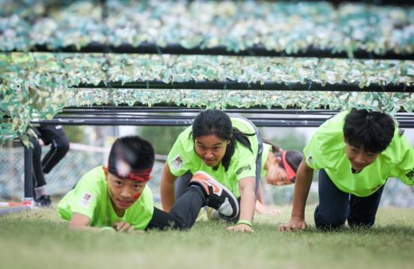 (活动现场,家长和小将们协力拼搏