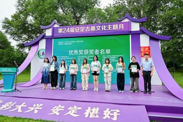 近日,“古韵今风 未来椹好”文化创意设计大赛作品展暨颁奖典礼在安定镇御林古桑园启动。北京印刷学院设计艺术学院党委书记史民峰,北京印刷学院统战部副部长王蕊,北京印刷学院对外合作交流处副处长、民盟大兴区工委副主委刘玲,民盟大兴区工委副主委潘春倩,安定镇党委委员、人大主席王作军,党委委员、宣传部长何玮佳,党委委员、组织部长、统战部长、工会主席杨同波,区委统战部、区人力资源和社会保障局相关同志,民盟大兴区工委相关盟员代表,教师代表及获奖师生参加活动。