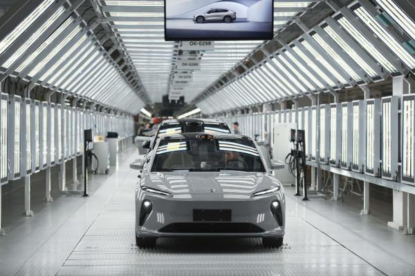 这是在安徽省合肥市新桥智能电动汽车产业园蔚来第二工厂拍摄的新能源汽车生产线(2024年5月9日摄。新华社记者 张端 摄