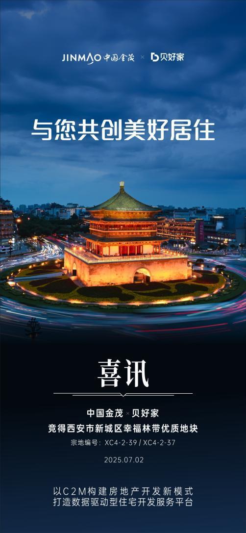 7月2日,西安市新城区陕汽厂南区XC4-2-37、XC4-2-39两地块挂牌出让,由中国金茂和贝好家以总价6.15亿元摘得,折合成交楼面价5263元/平方米。据悉,此次合作中,中国金茂凭借丰富的开发运营经验和突出的产品能力,将主要负责该地块的综合开发运营;贝好家发挥大数据与 AI 能力,负责以C2M(Customer to Manufacturer,从消费者到制造者 理念为项目提供精准产品定位方案。