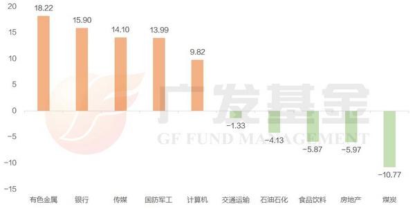 广发基金投顾团队表示,有色金属主要受益于其中贵金属(主要是黄金的大幅上涨。而银行的表现,可以说是意料之外、情理之中的。意料之外在于,银行近年来的经营基本面并不是非常可观,净息差持续缩减而不良率有所上升。但情理之中则是在于,资产荒持续下,银行成为了稳健投资型资金为数不多的选择。