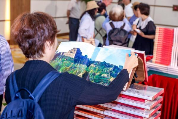 (游客在《遇见长城》新书发布会上阅览长城风光