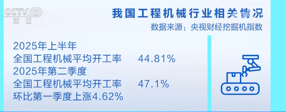 “央视财经挖掘机指数”显示,上半年全国基建项目平稳推进,全国工程机械平均开工率为44.81%。其中,第二季度开工率为47.1%,环比一季度上涨4.62%。