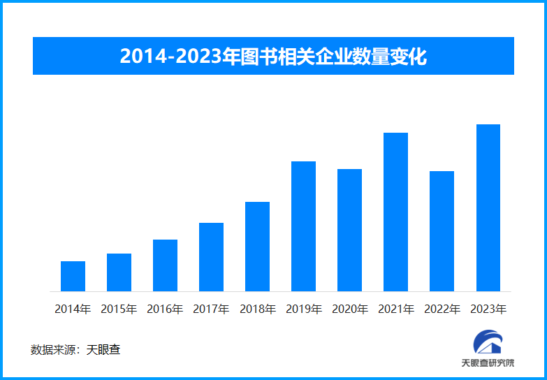 天眼查专业版数据显示,截至目前我国现存在业、存续状态的图书相关企业超439.3万家。其中,2024年截至目前新增注册相关企业约61.5万余家,从企业注册数量趋势来看,2019年以前,图书相关企业的注册数量呈现出逐年增长的态势,近5年则呈现出一定的数量增减波动,但2023年仍旧出现了历史最高值,为约57.1万家。