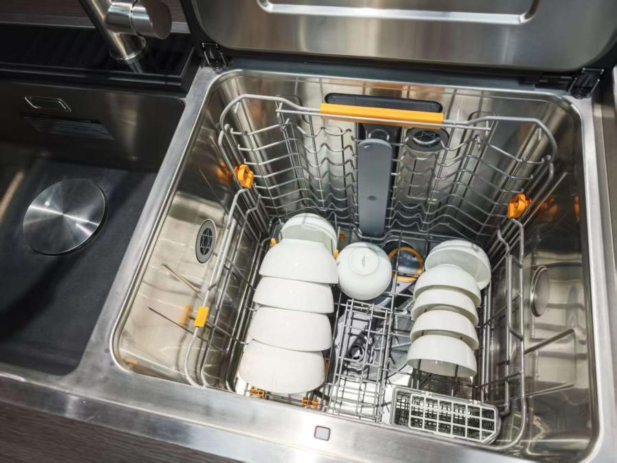 图为某品牌水槽洗碗机内部。新华网记者 赵秋玥摄