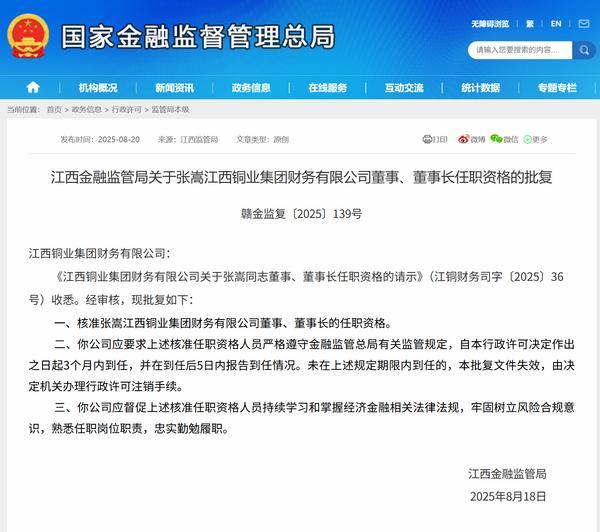 张嵩获批担任江西铜业财务公司董事长巴适游戏网• 2025-08-20 16:04:07•快讯•阅读 125 财经8月20日讯 今日,江西金融监管局公布相关批复,核准张嵩江西铜业集团财务有限公司(简称“江西铜业财务公司”董事、董事长的任职资格。以下是相关批复正文: 标签: 金融/ 时隔仅46天,又一场重磅会议释放强信号:光伏反内卷战役已全面升级 上一篇2025-08-20金河生物控股股东9天减持1550万股 套现1.06亿元下一篇 2025-08-20相关推荐 “内部人员”可办“靓号”?起底代办车牌套路购置新车,谁都希望能有一组心仪的车牌号,而除了正常选号,也有人试图托这样那样的“内部关系”,办到一张所谓的“靓号车牌”>>>2025-08-20 16:04:07583 2025善议论坛:江南布衣携手 Spiber 以未来纤维重启时尚新纪元随着越来越多品牌、科技企业与平台加入这一进程,下一代材料供应链的重塑必将加速推动时尚产业迈向一个更加绿色与可持续的新纪元。2025-08-20 16:04:07359 青小云带您解码青云店:一座现代小镇的生机美视频无法播放,请升级浏览器至最新版。2025-08-20 16:04:071777 司法部发布规范涉企行政执法专项行动第二批典型案例贵州某县政府行政执法监督局针对县交警大队辅警独立执法的问题,明确执法辅助人员与正式执法人员的权责边界,杜绝辅助人员独立执法。 针对涉企检查“频次过高、重复2025-08-20 16:04:07826 新版室外健身器材安全国家标准近日实施 一图看懂十二个变化新版《室外健身器材的安全通用要求》新增总体要求、绿色环保和可回收材料要求、载荷计算方法等内容,并增加了适老化和适儿化要求,突出对“一老一小”的关爱。2025-08-20 16:04:071932 逆势向上!中国外贸增速逐季加快着眼细分数据,外贸“稳中向好”的“面貌”更加清晰,抗压抗逆能力进一步显现。 从季度看,增速逐季加快。从一、二季度分别增长1.3%、4.5%,到三季度增长6%,我国进出口已2025-08-20 16:04:07104 我国首份城市综合发展指数报告发布 北京、深圳、上海综合排名前三综合评估结果显示:我国城市高质量可持续发展呈现“头部引领、整体向好”的良好态势。北京、深圳、上海位居综合排名前三。 综合评估结果显示:我国城市高质量可持续2025-08-20 16:04:07918 李正斌获批担任中铁信托总经理中国网财经10月13日讯 今日,四川金融监管局公布相关批复,核准李正斌中铁信托有限责任公司总经理的任职资格。以下是相关批复正文: 公开资料显示,中铁信托是经国家金融2025-08-20 16:04:07718