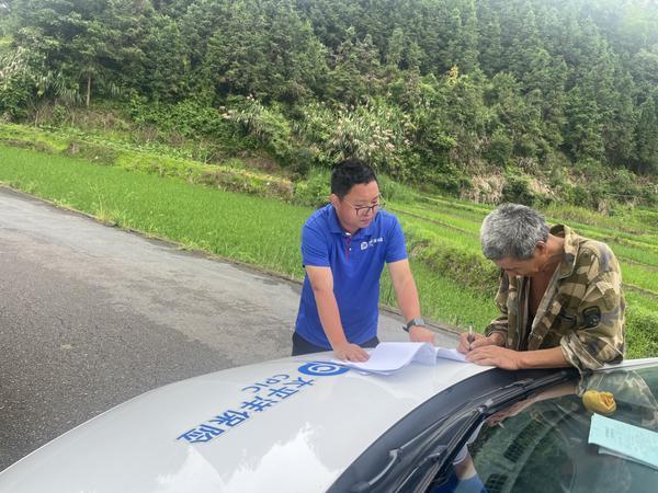 中国太保产险丽水中支农险工作人员指导当地银发农户参保