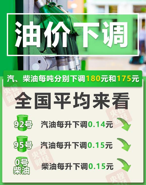 92号汽油每升下调0.14元,