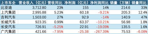 随着市场竞争加剧,上市车企业绩分化加剧。