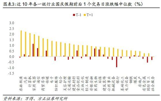行业层面,方正证券表示,从行业指数看,申万一级行业在假期后短期同样多数收涨。其中,农林牧渔、汽车、计算机、家用电器和通信行业节后首个交易日涨跌幅中位数分别为 2.34%、 2.22%、 2.11%、 2.00%和 1.85%,表现靠前。