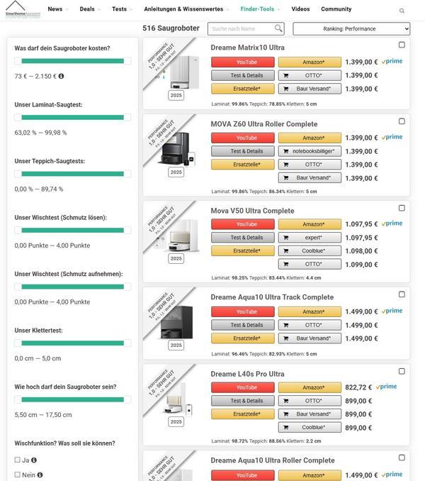 作为德国极具公信力的智能家电评测平台,Smarthome Assistant已累计评测超510款清洁产品,其评价体系覆盖扫地机性能全维度:从最基础的吸力、拖地效果,到进阶的导航精度、障碍物规避能力,再到清洁基站实用性及创新功能突破性,均采用严苛标准打分,最终筛选出真正具备市场竞争力的产品。Matrix 10 Ultra 能在众多竞品中脱颖而出,核心源于其首创技术与顶配性能的双重加持。