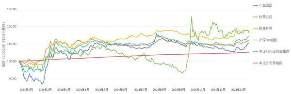 图4:产业园区、收费公路、能源环保与中证REITs全收益、沪深300及中证公司债指数对比(2024年度
