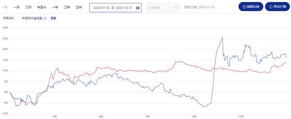 图2:中证REITs全收益指数与沪深300指数对比(2024年度