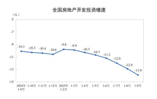 此外,据国家统计局数据,1—9月份,全国房地产开发投资67706亿元,同比下降13.9%(按可比口径计算;其中,住宅投资52046亿元,下降12.9%。
