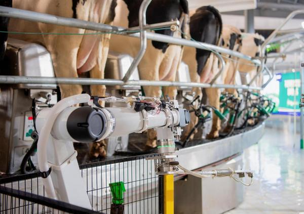 奶厅自动化实现了从挤奶到清洗的全流程数据化、自动化控制。同时,通过配备自动化挤奶设备和机械药浴臂等设施,实现了无人化清洗和精准管理,可为牧场节约5名人力,效率提升50%以上。