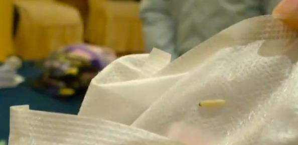 当着苏菲品牌方负责人的面,记者现场随机打开一包霍女士购买的且未拆封的苏菲安心裤,发现里面也出现了活虫。