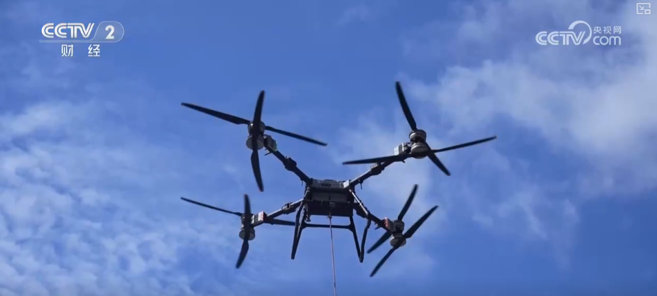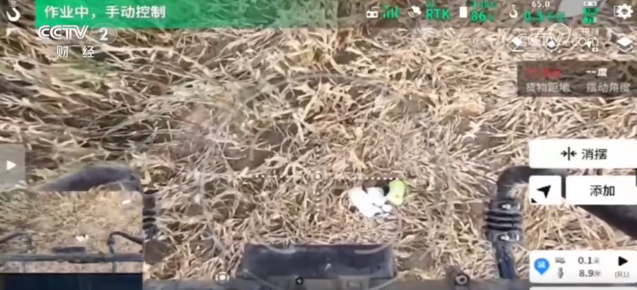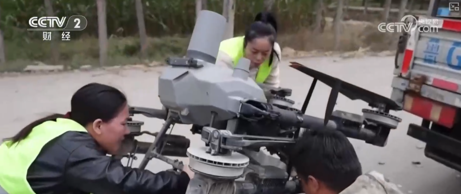 因为有着植保无人机的飞行经验,面对眼前粮食运输的难题,她灵机一动,把无人机加上了调运套装,开始运起了粮食。