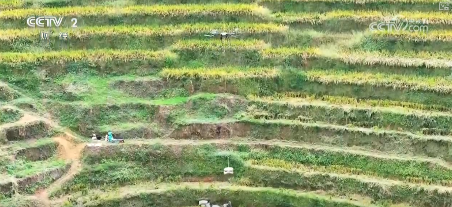 近期,江西赣州216万亩晚稻正在抓紧时机全力抢收。无人机、小型化收割机运用到山区小田块收割,有效提升山区收割效率。
