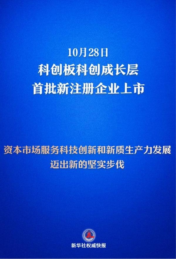 10月28日,科创板科创成长层首批新注册企业上市。中国证监会副主席李超在上市仪式上表示,这标志着资本市场服务科技创新和新质生产力发展迈出新的坚实步伐。