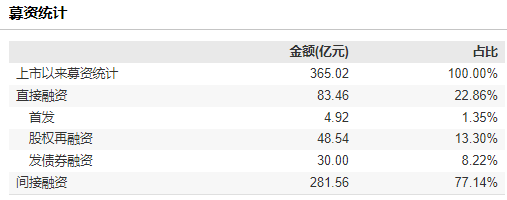 根据Wind数据统计,金发科技自上市以来直接融资金额83.46亿元,其中首发募资4.92亿元,股权再融资和发债券再融资金额分别为48.54亿元和30亿元。
