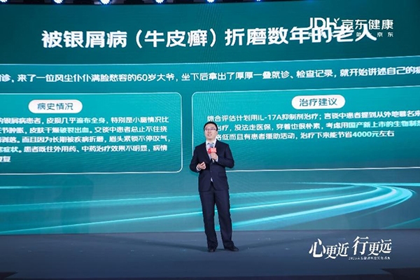除了医疗服务能力的创新拓展,京东健康也在持续深耕皮肤、心理服务与中医等互联网医疗专科体系建设,并借助医药供应链优势,让更专业的医药健康产品和服务触手可及。来自复旦大学附属华山医院皮肤科医生王上上分享了从京东互联网医院开出银屑病新药的线上处方,帮助用户实现了线上复诊开方、药品订购和配送到家的一站式体验,大大提升了银屑病患者用药的可及性和便利性。