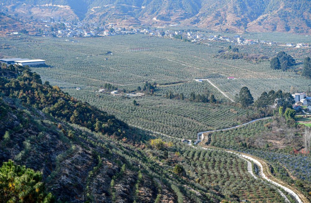 在四川冕宁县宏模镇油橄榄现代林业园区里,连片的油橄榄林形成产业规模效应(2024年12月12日摄。新华社记者 张超群 摄