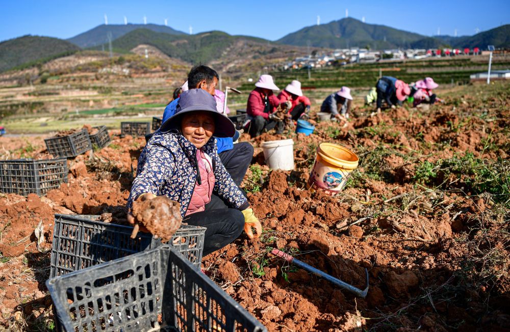 在四川攀枝花市仁和区板栗现代林业园区,农户在采收魔芋(2024年12月10日摄。新华社记者 张超群 摄