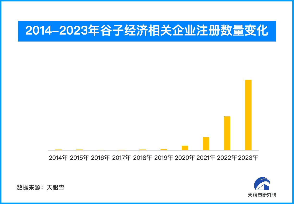 从年度企业注册数量来看,谷子经济相关企业呈现出爆炸性增长的趋势。2014年,相关企业年度注册量仅为1.3万余家。然而,随着时间的推移,这一数字逐年攀升。至2019年,相关企业年度注册量已达到5万余家。到了2020年,更是实现了显著跃升,相关企业年度注册量激增至18.8万余家,较前一年增长近三倍。
