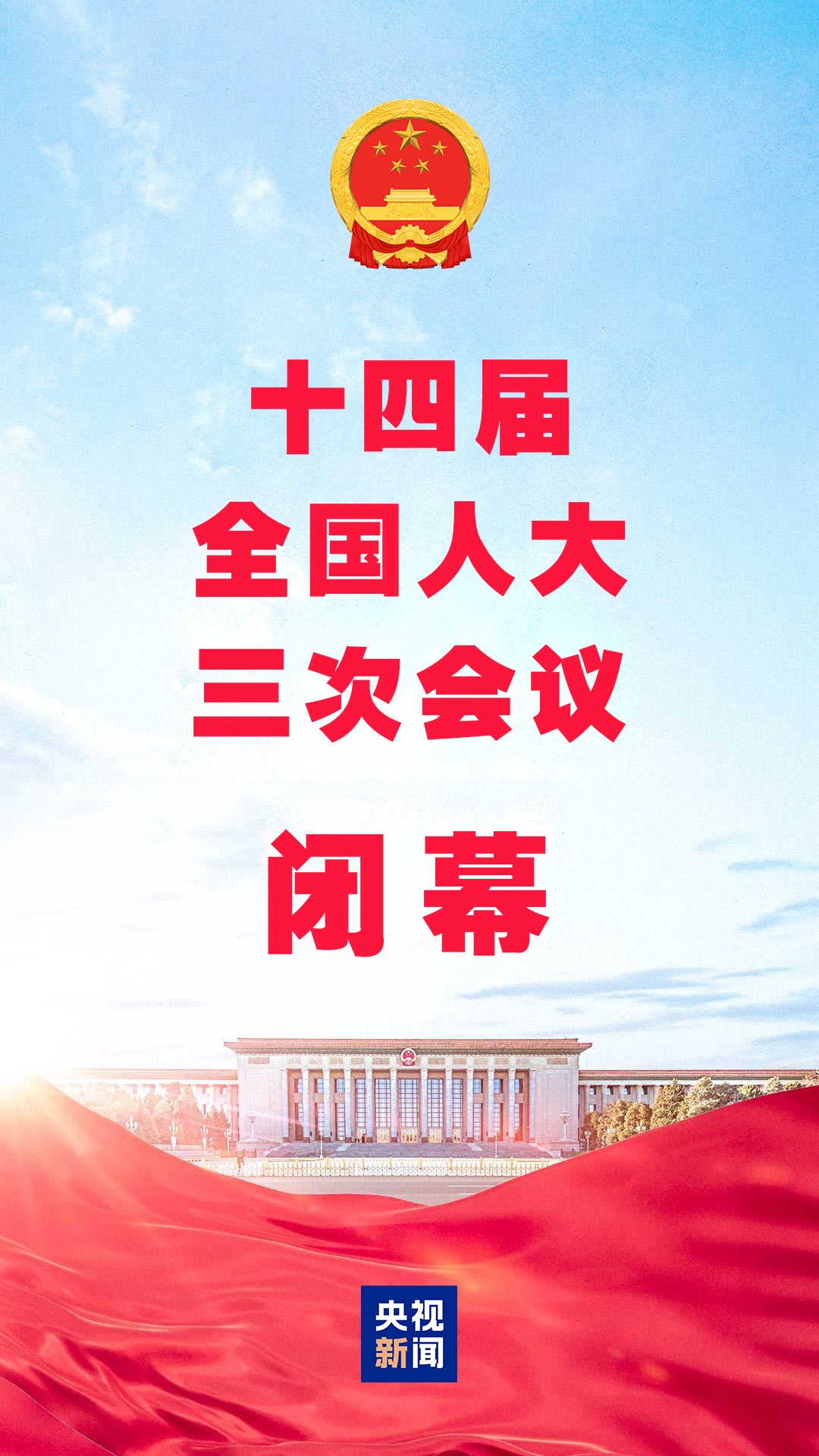 第十四届全国人民代表大会第三次会议在圆满完成各项议程后闭幕。