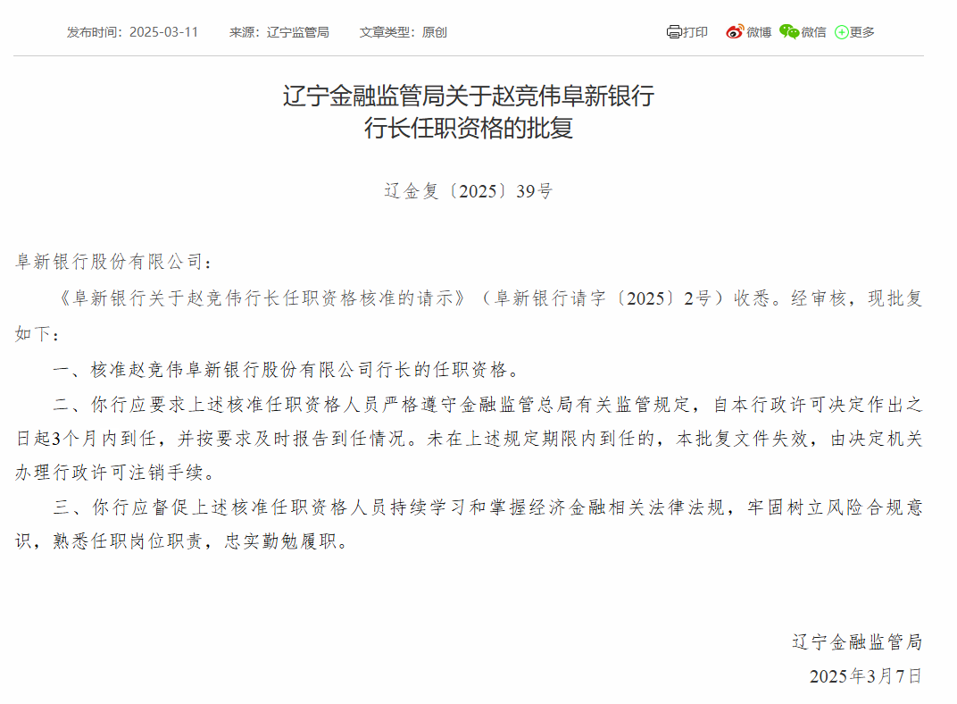 阜新银行行长赵竞伟任职资格获批巴适游戏网• 2025-03-12 10:05:47•快讯•阅读 1831 财经3月12日讯 昨日,辽宁金融监管局公布一则批复显示,核准赵竞伟阜新银行股份有限公司行长的任职资格。 标签: 银行/ 东莞信托实收信托资产规模突破千亿 增资赋能战略转型 上一篇2025-03-12三部门发声:推动耕地保护数智化转型 释放体育消费潜力下一篇 2025-03-12相关推荐 “内部人员”可办“靓号”?起底代办车牌套路购置新车,谁都希望能有一组心仪的车牌号,而除了正常选号,也有人试图托这样那样的“内部关系”,办到一张所谓的“靓号车牌”>>>2025-03-12 10:05:47583 2025善议论坛:江南布衣携手 Spiber 以未来纤维重启时尚新纪元随着越来越多品牌、科技企业与平台加入这一进程,下一代材料供应链的重塑必将加速推动时尚产业迈向一个更加绿色与可持续的新纪元。2025-03-12 10:05:47359 青小云带您解码青云店:一座现代小镇的生机美视频无法播放,请升级浏览器至最新版。2025-03-12 10:05:471777 司法部发布规范涉企行政执法专项行动第二批典型案例贵州某县政府行政执法监督局针对县交警大队辅警独立执法的问题,明确执法辅助人员与正式执法人员的权责边界,杜绝辅助人员独立执法。 针对涉企检查“频次过高、重复2025-03-12 10:05:47826 新版室外健身器材安全国家标准近日实施 一图看懂十二个变化新版《室外健身器材的安全通用要求》新增总体要求、绿色环保和可回收材料要求、载荷计算方法等内容,并增加了适老化和适儿化要求,突出对“一老一小”的关爱。2025-03-12 10:05:471932 逆势向上!中国外贸增速逐季加快着眼细分数据,外贸“稳中向好”的“面貌”更加清晰,抗压抗逆能力进一步显现。 从季度看,增速逐季加快。从一、二季度分别增长1.3%、4.5%,到三季度增长6%,我国进出口已2025-03-12 10:05:47104 我国首份城市综合发展指数报告发布 北京、深圳、上海综合排名前三综合评估结果显示:我国城市高质量可持续发展呈现“头部引领、整体向好”的良好态势。北京、深圳、上海位居综合排名前三。 综合评估结果显示:我国城市高质量可持续2025-03-12 10:05:47918 李正斌获批担任中铁信托总经理中国网财经10月13日讯 今日,四川金融监管局公布相关批复,核准李正斌中铁信托有限责任公司总经理的任职资格。以下是相关批复正文: 公开资料显示,中铁信托是经国家金融2025-03-12 10:05:47718