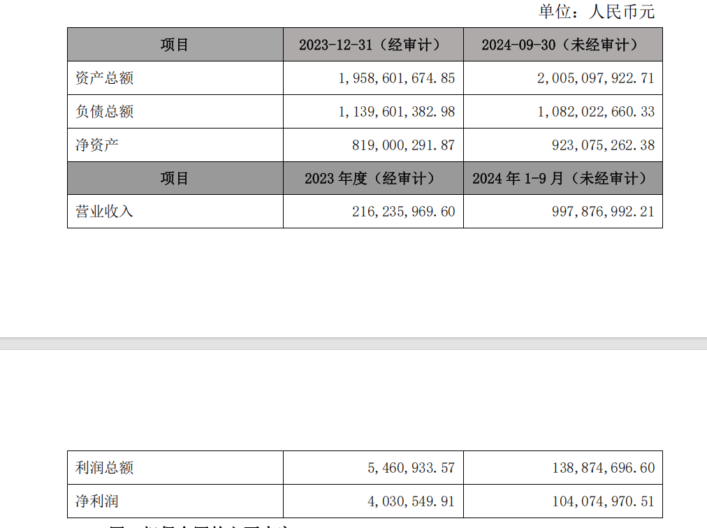 瑞达新控最近一年及一期主要财务指标如下: