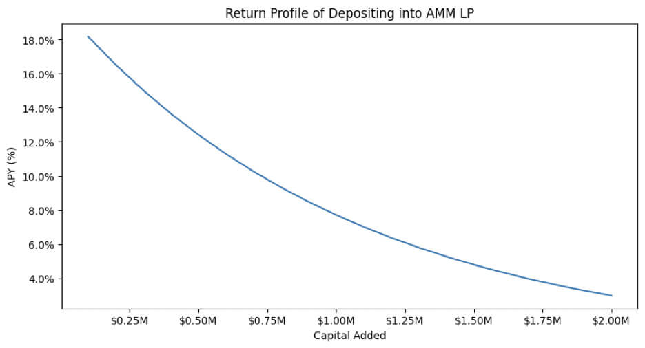 为了缓解这种风险,投资者可以选择投资于资产价格波动较小的稳定币资金池,这样的选择可以带来更加稳定的收益预期。此外,值得注意的是,随着资金池中流动性的增加,单个LP的预期回报率可能会降低,因为更多的流动性提供者分享了交易费收益。