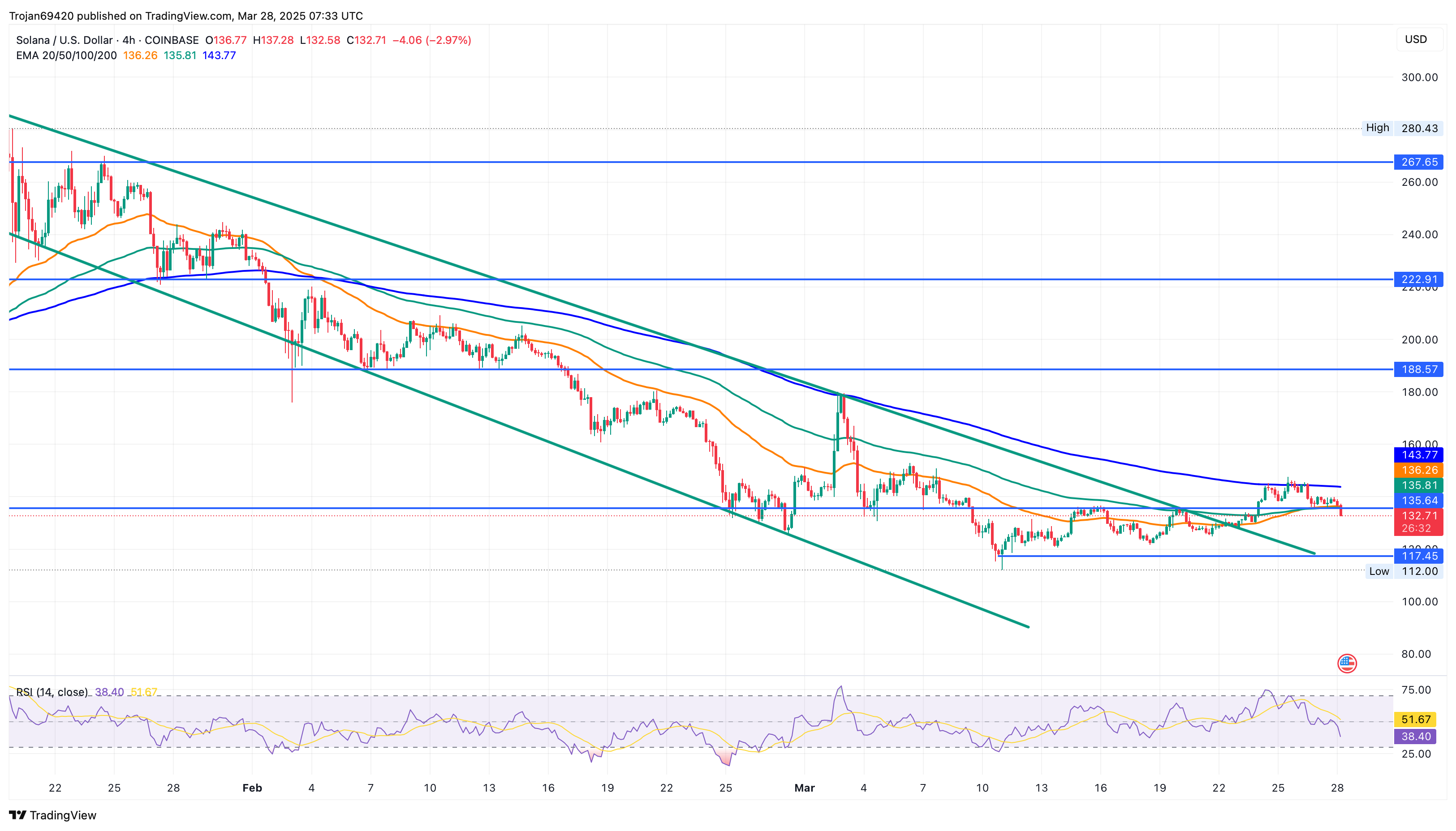 Solana的价格在网络放缓和市场恐惧情绪上升的影响下,正在逼近130美元的支撑位,这似乎暗示着可能会重新测试117美元的低点。