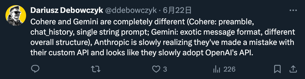 何况,只依靠 API 也是不行的,每家大模型厂商的 API 都不同,并不能「无缝切换」。