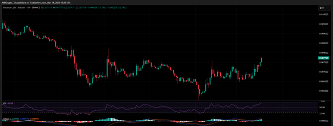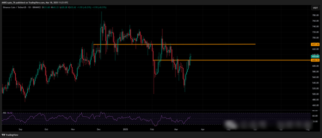 最近,BNB在去中心化交易所(DEX)的交易量增长了13%,这对其价格走势产生了积极影响。过去一周,BNB已经突破了三个主要阻力区,现在正接近2月初的高点640美元。更令人兴奋的是,BNB/BTC对创下了年度新高,显示出相对于比特币的强劲表现。交易量激增50%,证明了资本流入的强劲势头。