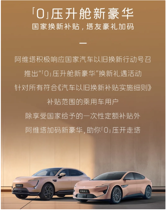 4月29日消息,阿维塔汽车今日公开宣布了一项名为“0 压升航新豪华”的优惠政策,旨在给予符合特定条件的乘用车用户购车补贴。