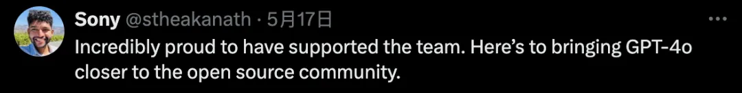 Meta的产品管理总监称,「我非常自豪能够给予这个团队支持。让我们朝着让GPT-4o更接近开源社区的方向迈进一步」。