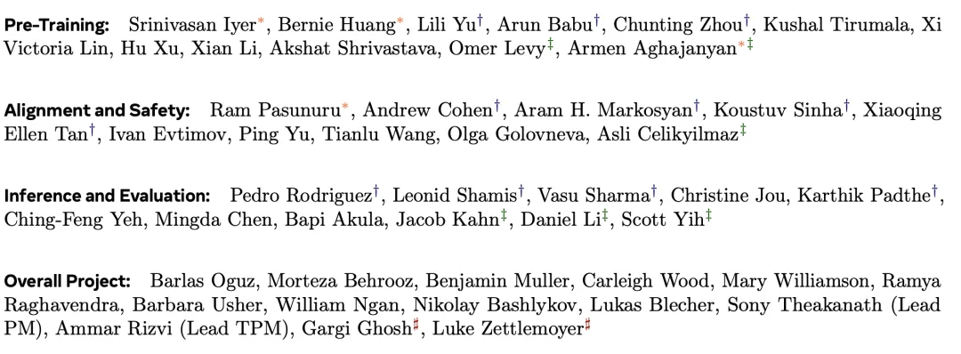包括预训练、对齐和安全、推理和评估、所有项目的参与者。
