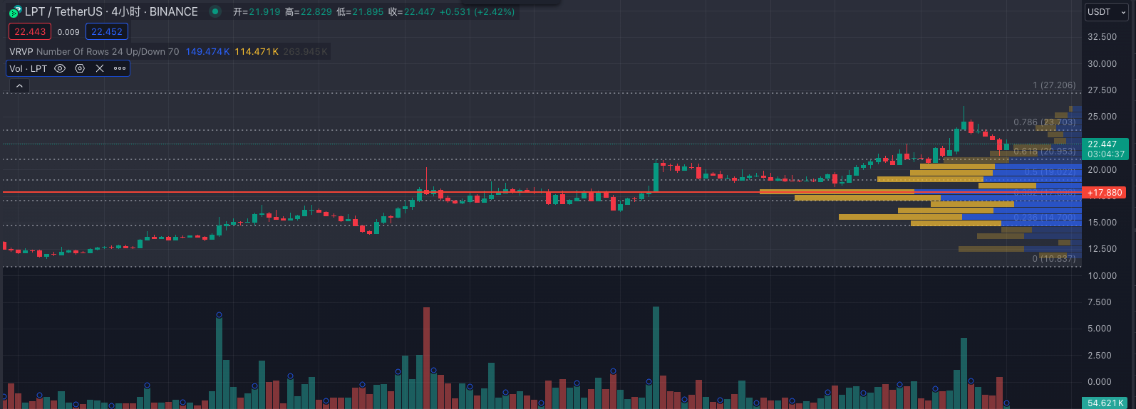 当前LPT市值7.2亿,代币全流通,主要交易场所在币安,近期两周成交量/mc在10%-20%之间