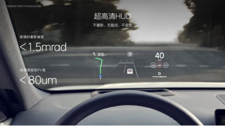 另外,HUD 成像系统和前风挡玻璃经过打磨,实现了不重影、无锯齿、不变色的高清画面效果。经过设计的重构,实现了防止重影造成眩晕感的效果。