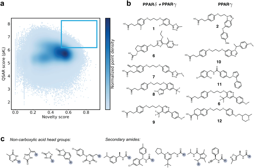 为了主动评估基于蛋白质结构的药物设计的深度相互作用组学习框架,产生了针对人类过氧化物酶体增殖物激活受体(PPAR)γ 亚型结合位点的潜在新配体。