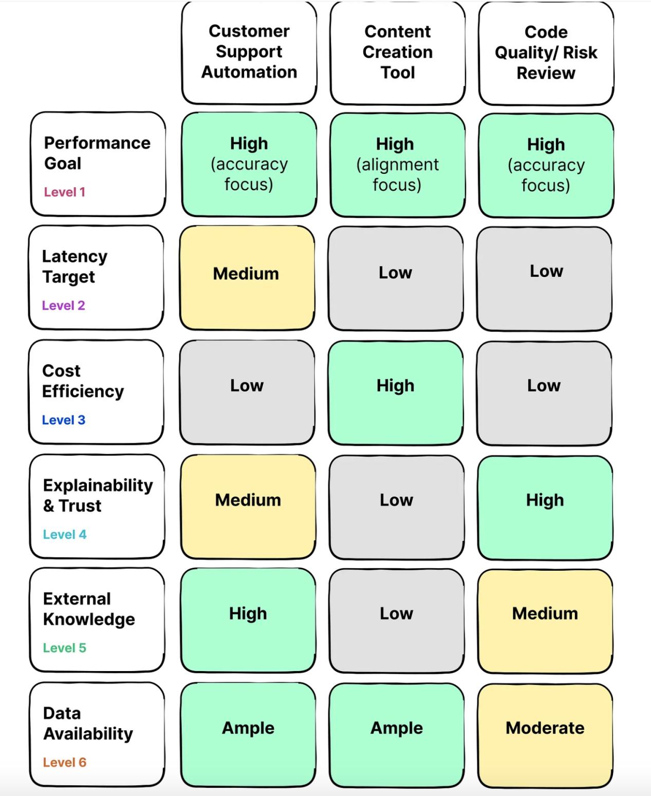 为了有效地调整优化LLM的策略,产品团队应该从深入了解业务目标和运营限制开始。为您的业务场景评估并确定以下关键维度的优先级。