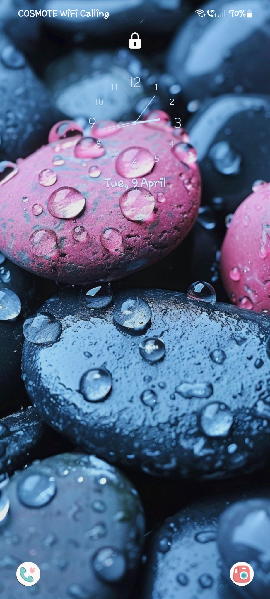 water drops on (你喜欢的颜色)pebbles, stunning wallpaper —s 500 —c 25 —w 10 —ar 9:16